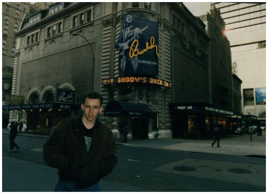 In 1988 I had designed what was essentially my first real show, a summer season variety show in my home town of Blackpool. My set stood out from the crowd because it was the first Blackpool show to really utilize the style and look of a prime time TV show in a theater environment. London theater producer Paul Eliott had seen the show and sent me a letter.. " come and meet me in London in the next few weeks " I had absolutely no idea what Paul had in mind when I took the long train ride from Blackpool to London. I struggled across Waterloo bridge with my large heavy portfolio crammed with what was almost entirely student projects. After I had struggled up 5 flights of stairs I must have looked a sweaty red faced nervous wreck when I first shook Pauls hand. Amazingly I left that office with a script for BUDDY the Buddy Holly story. I was 21 years old. Was Paul crazy ? he had just given a kid one year out of college with just one professional show under his belt a major West End musical to design. I was in up to my neck and the pressure was on, I had to learn fast.