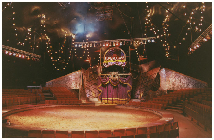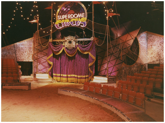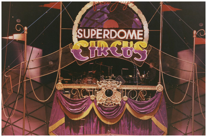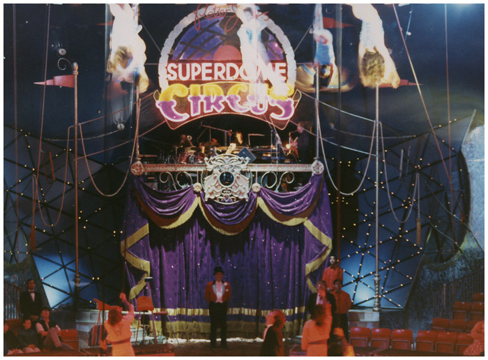 60's pop star Peter Jay had long been a producer of his permanent Circus in Great Yarmouth but now he planned to open a Blackpool version in a modern geodesic tented structure inside the famous Blackpool Pleasure beach Themepark. Designing for Circus holds many challenges for example..the band stand above the ring entrance had to be designed to withstand the force of an elephant leaning against it.