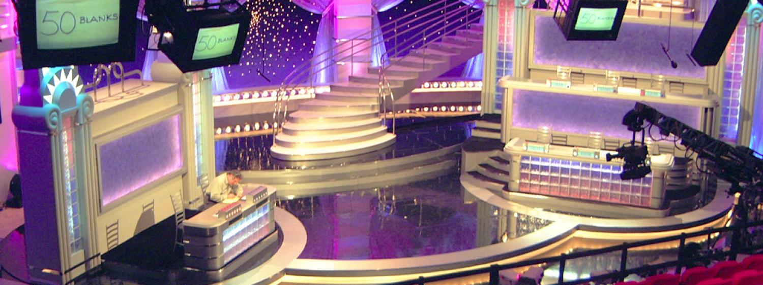 Known in the U.S. as the MATCH GAME , This show is one of those great institutions in British television . Celebrated for its awful tackiness but equally loved by the public for being so terrible. I got to design it twice for the BBC and then twice for ITV. The second set ( for itv ) was a glamorous homage to the classic Hollywood musical set designs..a perfect contradiction to the host ..drag queen lilly savage whos character is trailer park trash ..the clash worked perfectly.