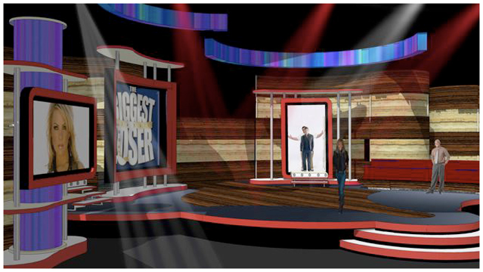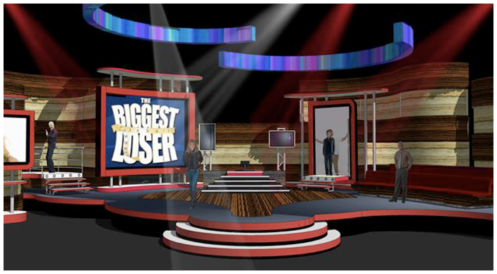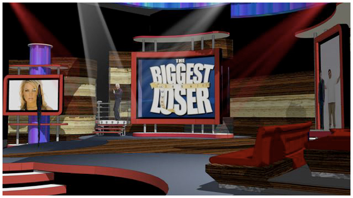 In 2008 I designed the live finale of THE BIGGEST LOSER for NBC A feel good challenge lifestyle show that pits people against each other with Exercise and diet challenges culminating in a weekly weigh in. The live studio final brings the final 3 contestants together one last time for the ultimate weigh in.