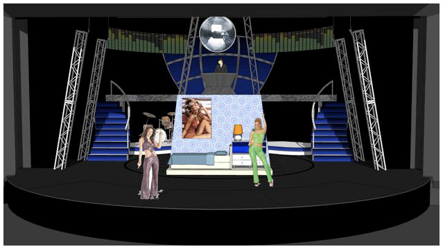 BOOGIE WONDERLAND was based on the highly successful west end musical BOOGIE NIGHTS that I had designed for Qdos ten years previously. The set for this production was a simplified glossed up version of what I did in the West End.
