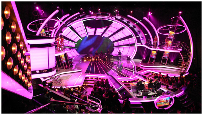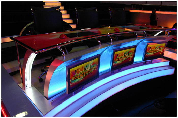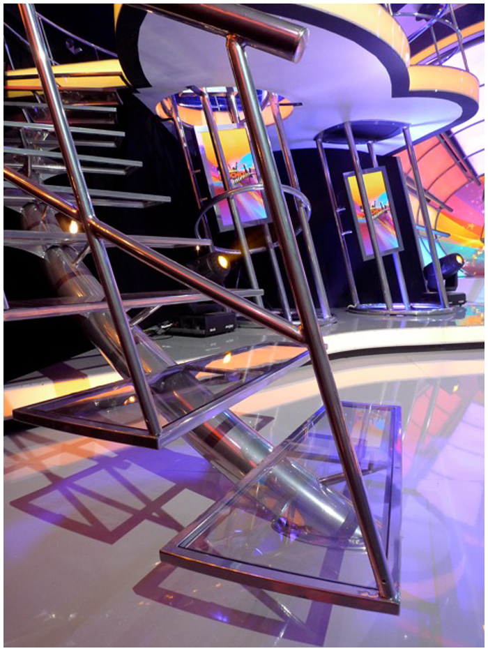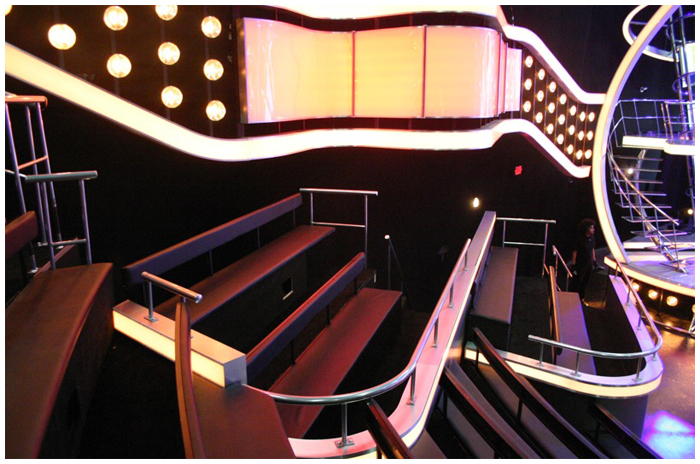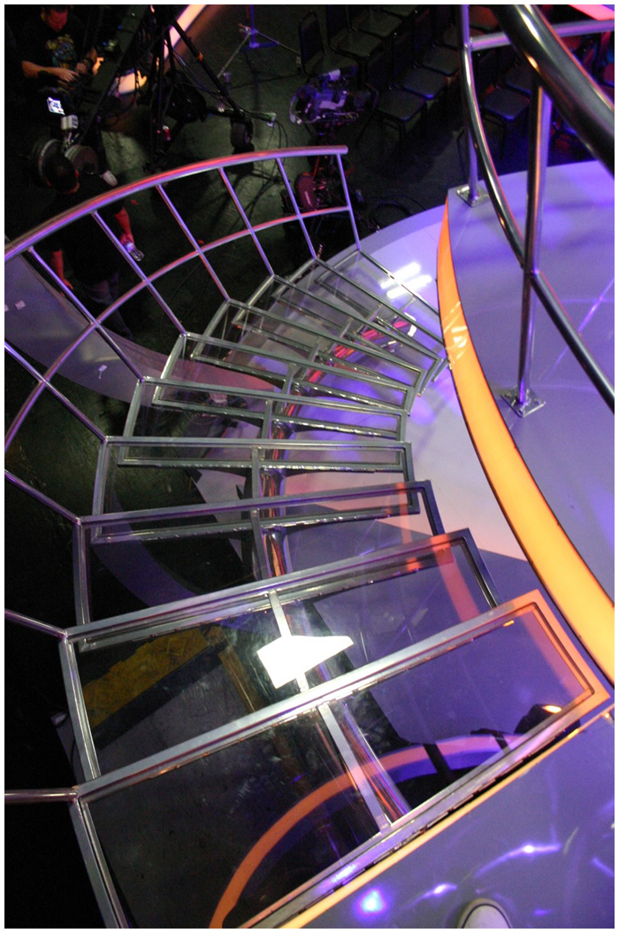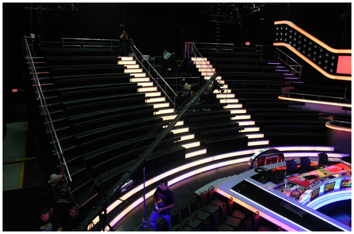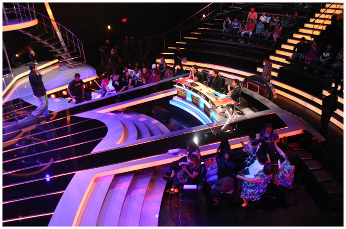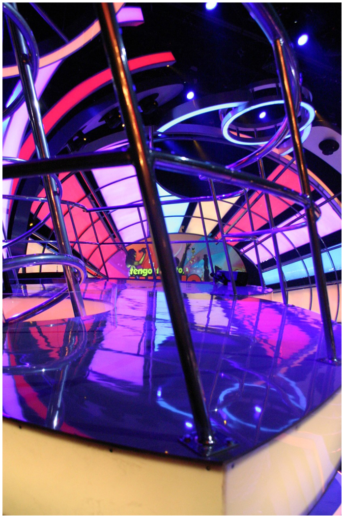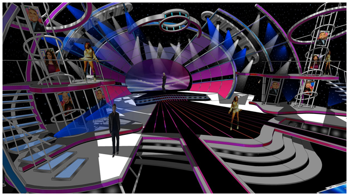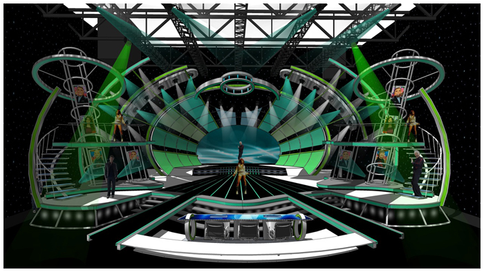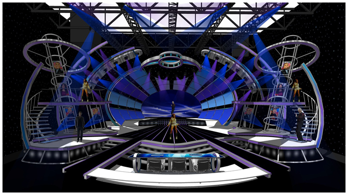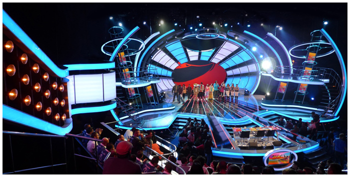 CHRISTMAS 2010 I WAS APPROACHED BY THE OWNERS OF LATIN NETWORK ESTRELLA TV TO DESIGN THEIR VERSION OF ' AMERICAS GOT TALENT ' I WAS TEMPTED WITH A HUGE BUDGET AND THE COMPANY PURCHASED A SOUND STAGE IN BURBANK SPECIALLY TO HOUSE THE SHOW. I WAS ABLE TO BRING IN MY CHOICE OF LIGHTING DIRECTOR AND STAGE CREW AND THE NETWORK OWNERS GAVE ME COMPLETE FREE REIGN AND TRUSTED ME WITH A MILLION DOLLARS OF THEIR MONEY. THIS IS WITHOUT DOUBT THE FIRST TIME IN MY CAREER THAT I HAVE HAD A GRAND BUDGET AND COMPLETE TRUST IN ME TO DO WHAT I DO. USUALLY THERE ARE ENDLESS BUDGET STRUGGLES, PERSONALITY CLASHES AND PRODUCERS MEDDLING WITH MY INITIAL DESIGNS UNTIL YOU SEE A WATERED DOWN SHADOW ON TV OF WHAT I INITIALLY CREATED.. MUCHO TALENTO IS PERHAPS THE SINGLE BEST REPRESENTATION OF MY CAPABILITIES IN THE TV INDUSTRY WHEN ACTUALLY TRUSTED.. I LOVE THIS SET.
