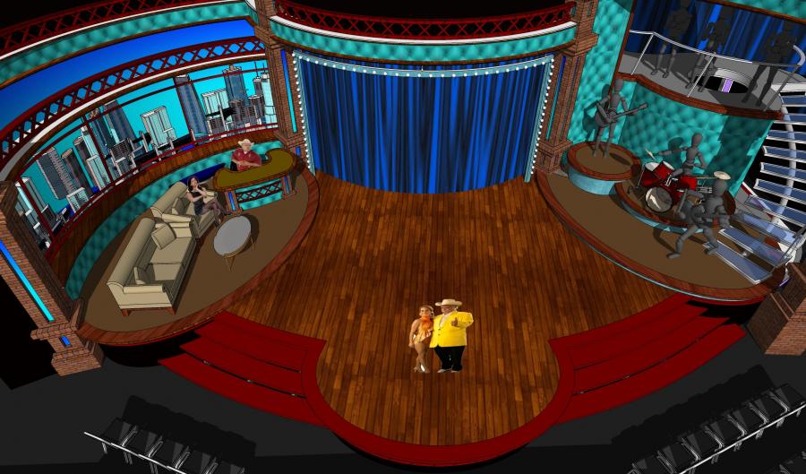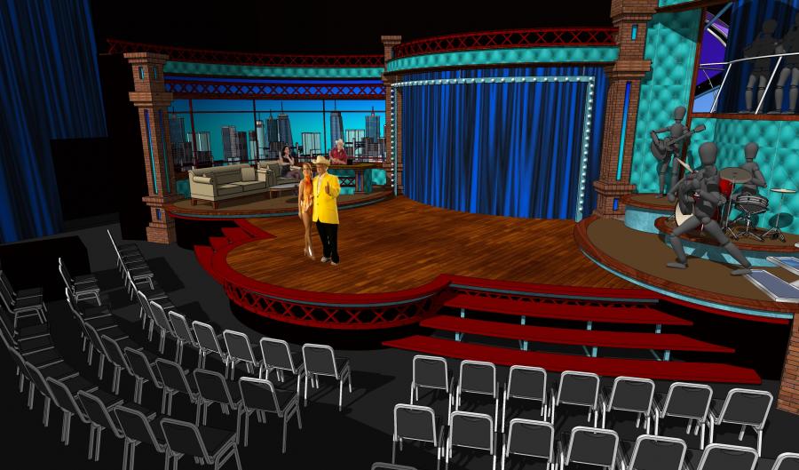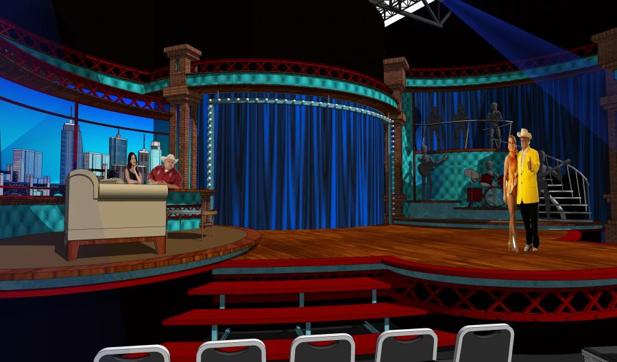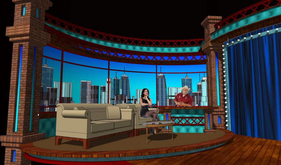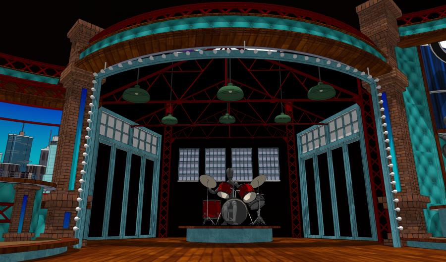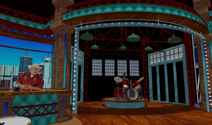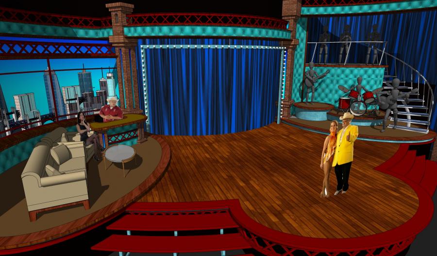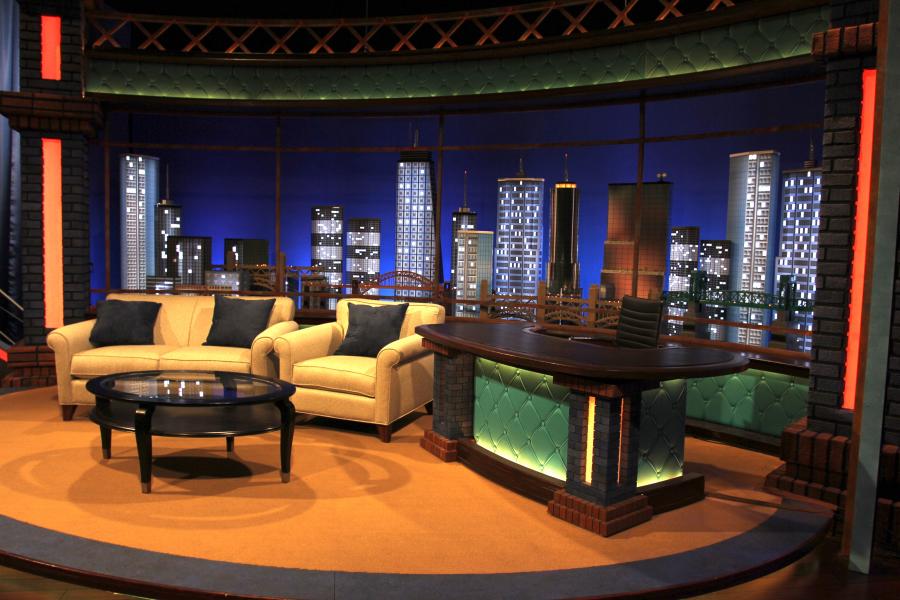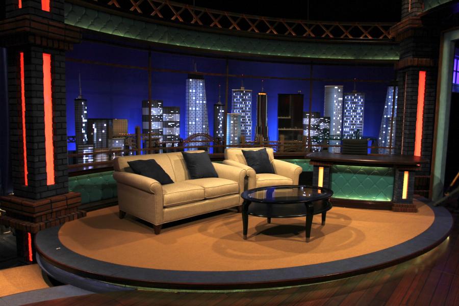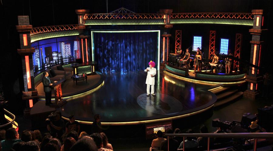 Famous Mexican comedian / clown Platanitos landed his first late night chat show and I designed a warehouse feel set for this new show that turned out to be a huge ratings hit in the Spanish market