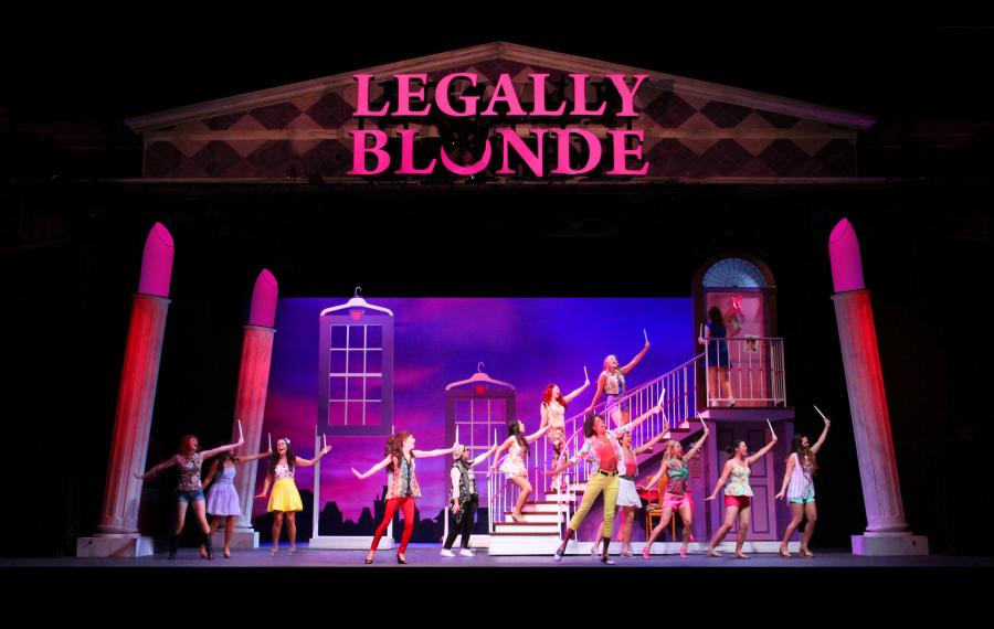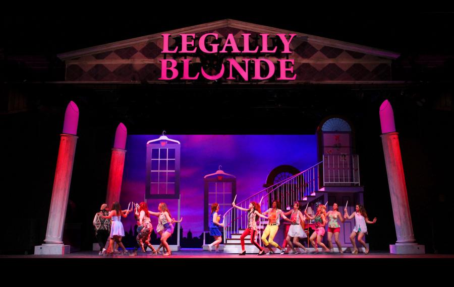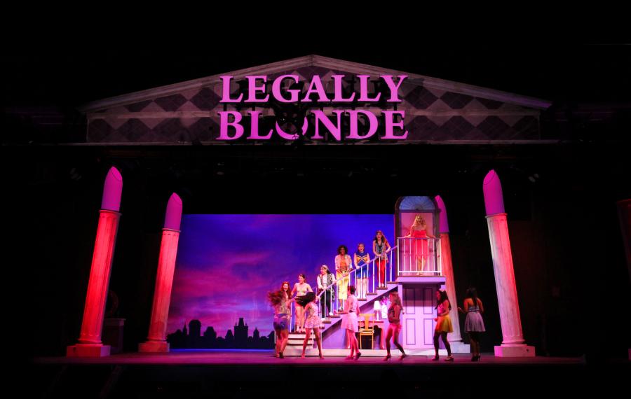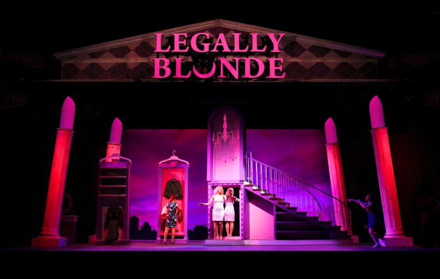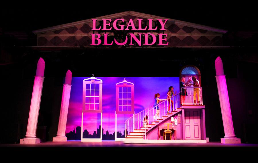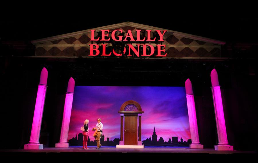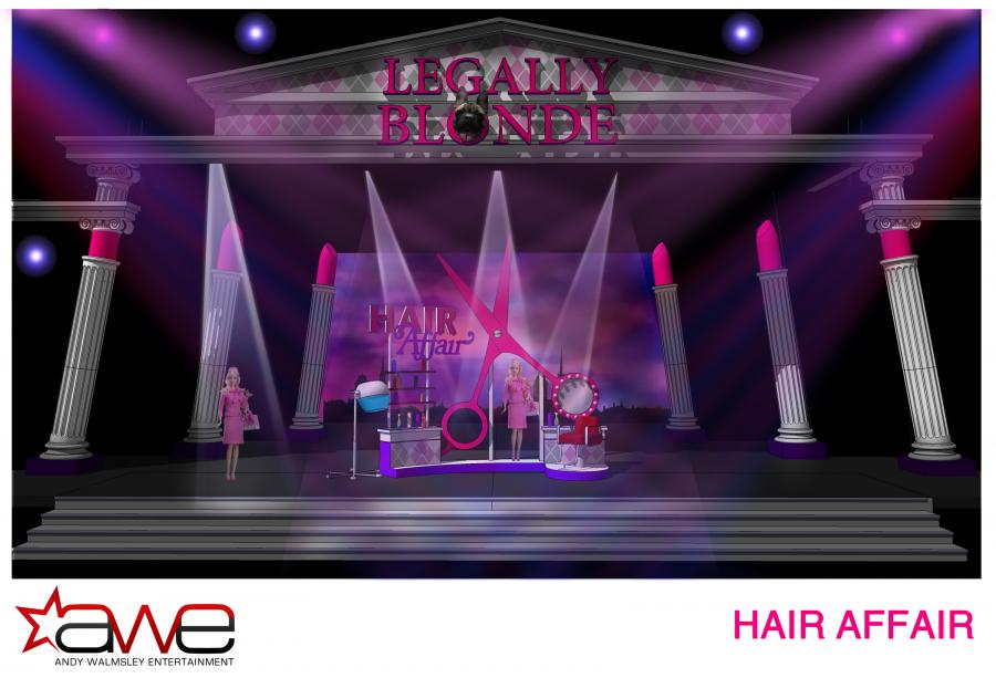 Legally blonde is a really fun high energy adaptation of the original movie featuring Elle Woods as she follows her heart to Harvard to take a degree in law just to be close to her ex boyfriend. Full of whimsical songs I decided to approach the set in a similar almost cartoon style with lots of nods to Elle's love of fashion and make up