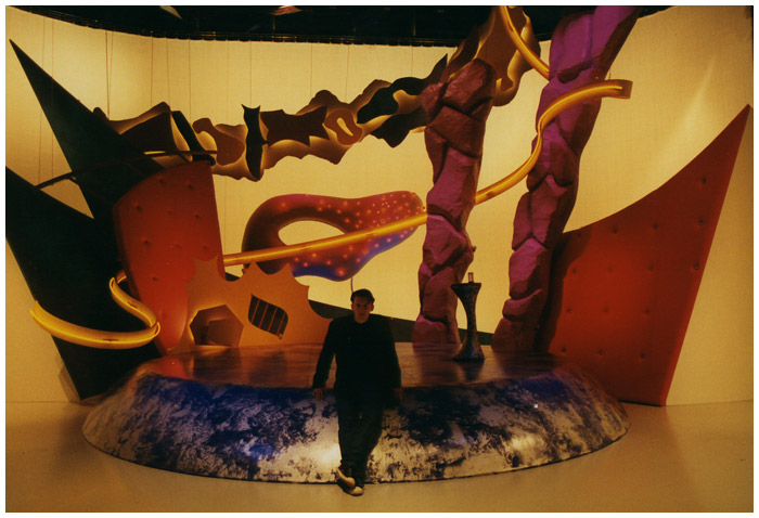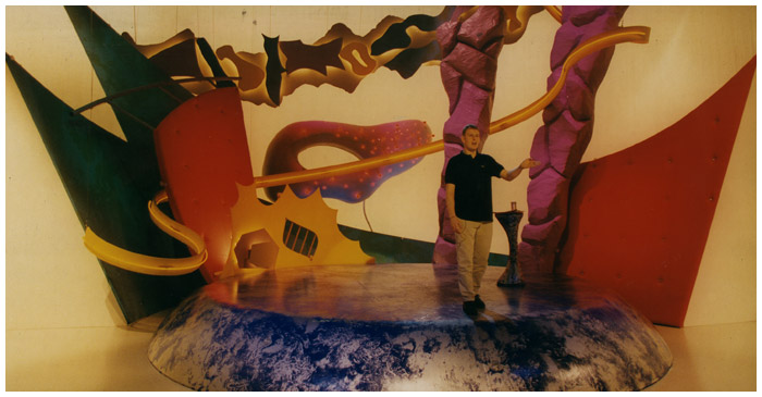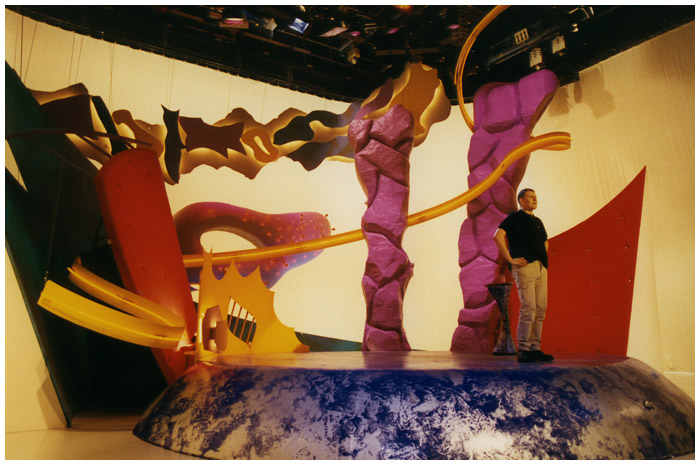 The set needed to be young and abstract to reflect patrick's style. Shot at fountain studios.