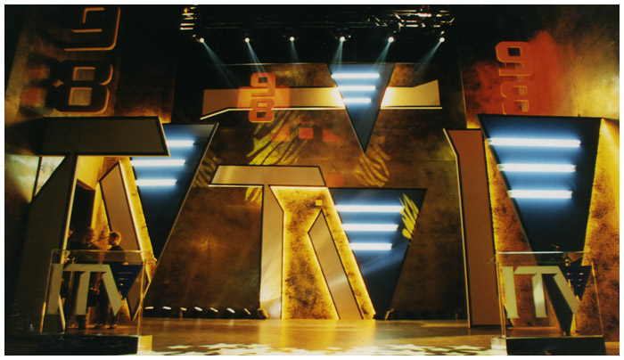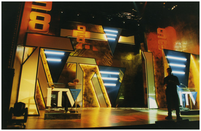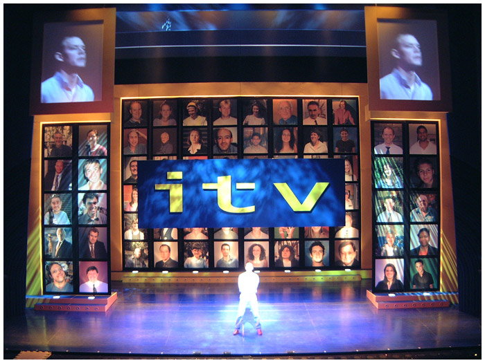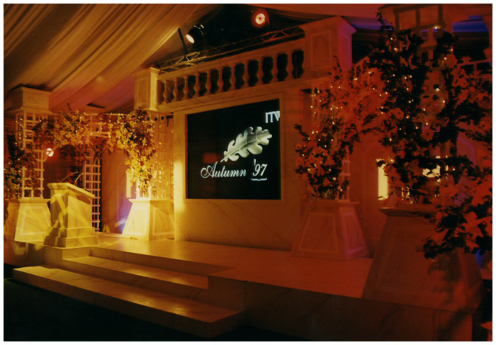 I designed six consecutive years of the ITV autumn schedule launch ( UP FRONTS ) in various West End theaters. The show was always a massive challenge as I was working directly with ITV network center executives and the show takes place on a Monday lunch time with access to the theater not possible until Saturday eve ... working around the clock on these shows was common practice.