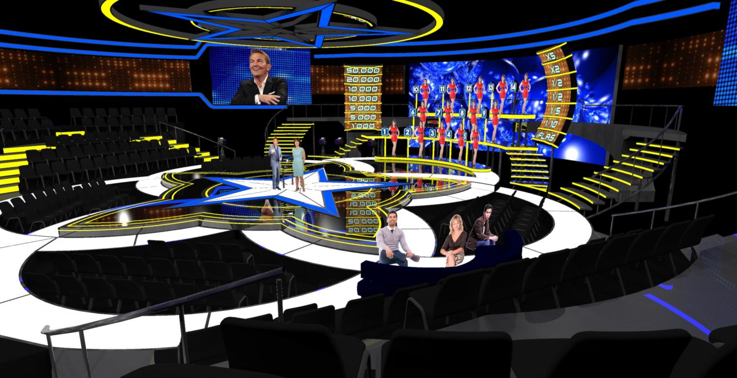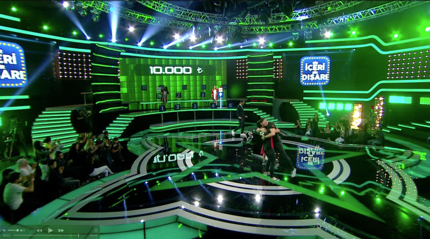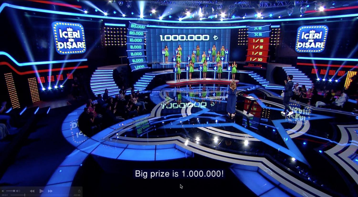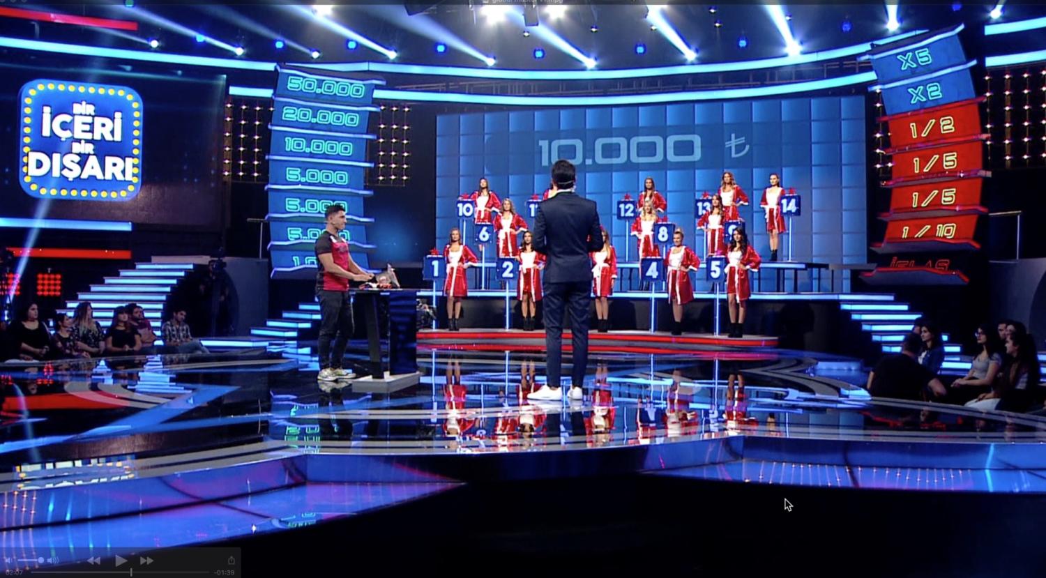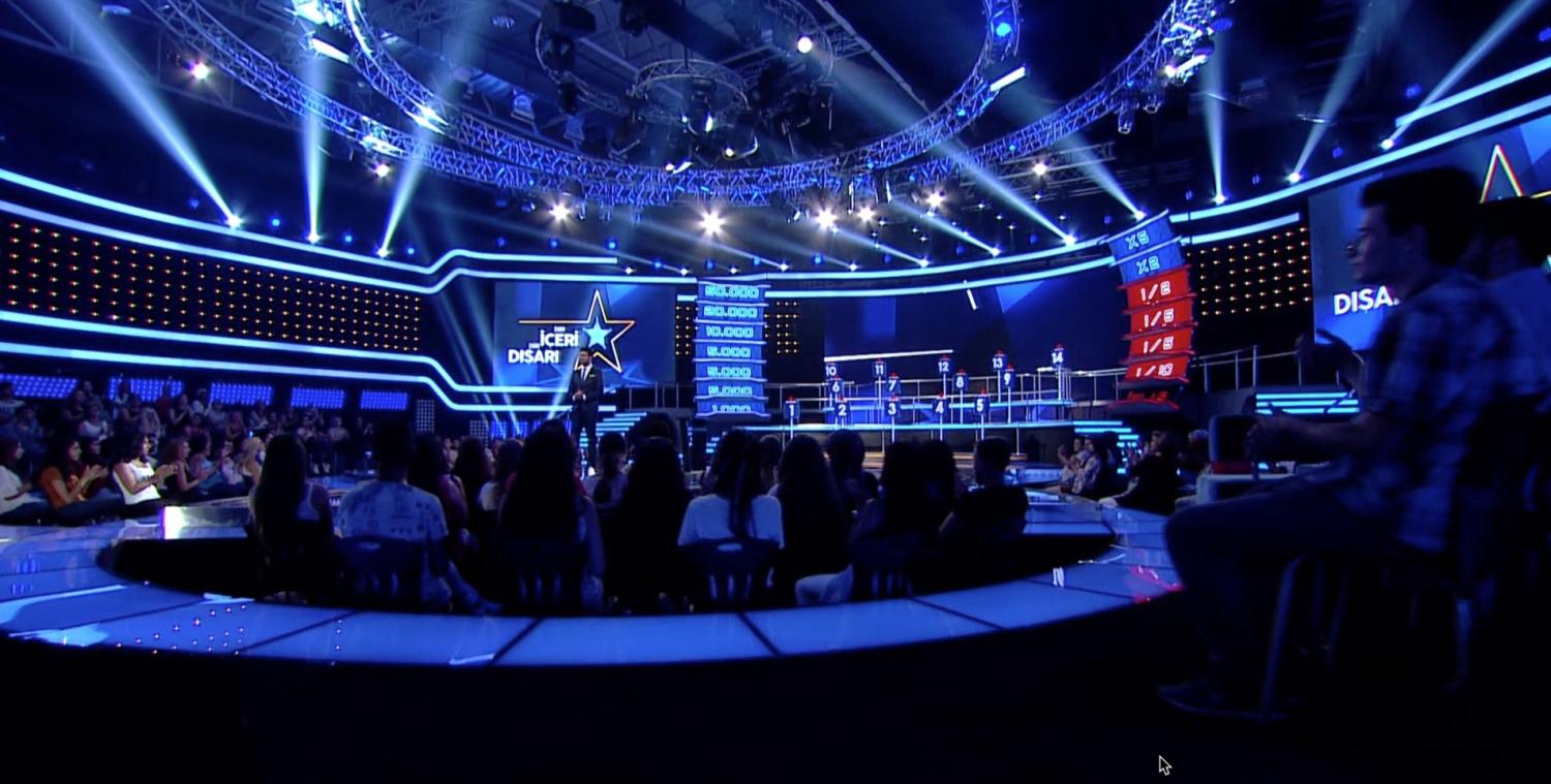 IN 2017 I DESIGNED A LARGE GAME SHOW FOR THE FOX NETWORK IN TURKEY CALLED IN AND OUT ( BIR ICERI BIR DISARI ) THE SHOW IS NOW IN THE PROCESS OF BEING SOLD WORLD WIDE AND PART OF MY BRIEF WAS TO DESIGN A SMALLER VERSION AND A LARGER SCALE VERSION THAT WILL BE REPRODUCED WORLD WIDE AS EACH TERRITORY BUYS THE FORMAT