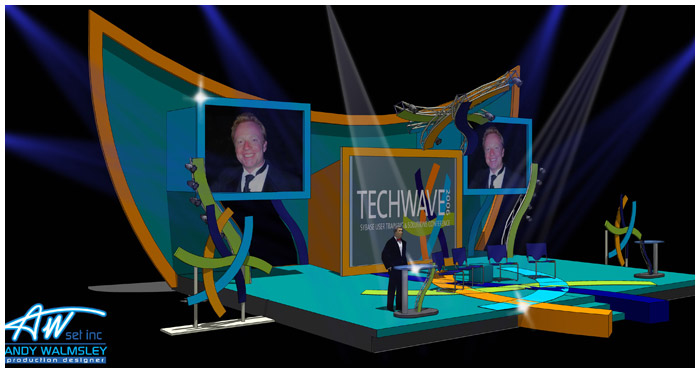 A conference set for the Mirage events center in las vegas for electronic company SYBASE.
