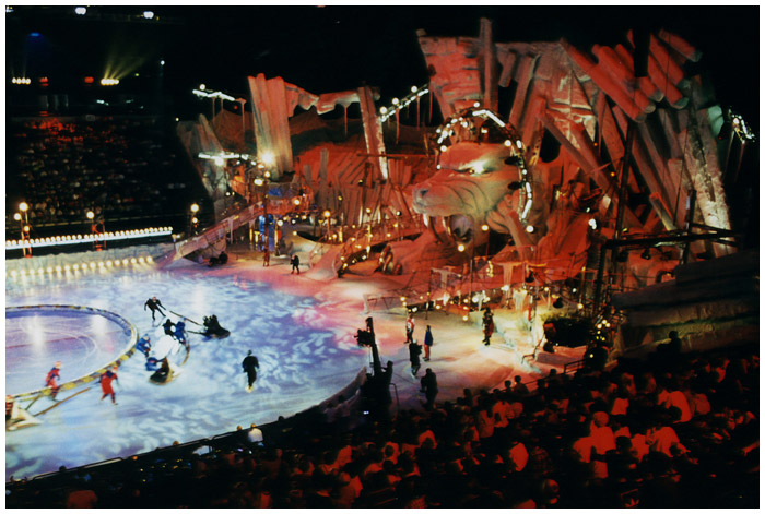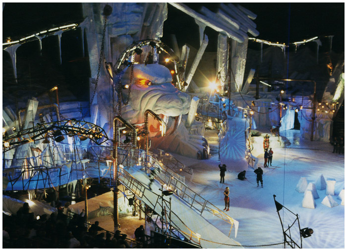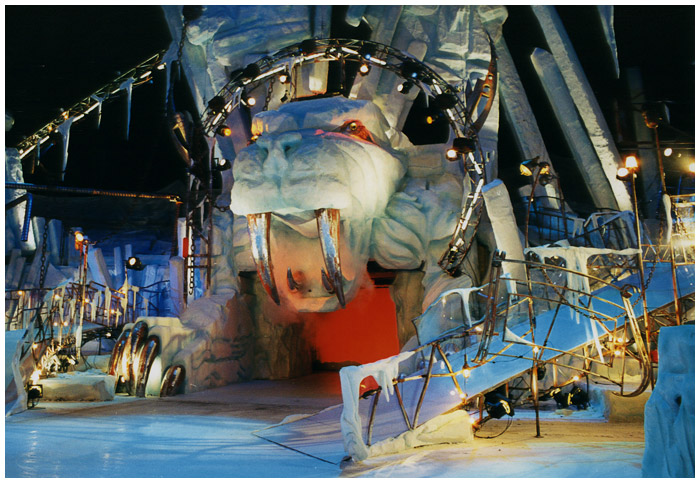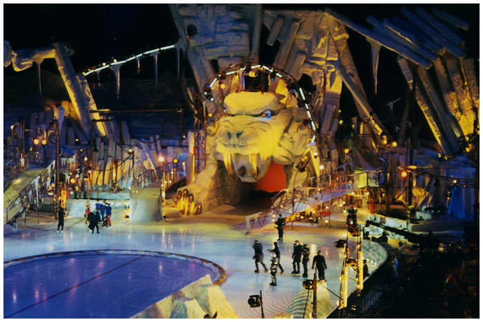 Building this set and the dozens of games was a huge undertaking and over 80 trailers of scenery where delivered to the Manchester nymex Ice hockey arena as 3 crews of people worked around the clock to build the set.