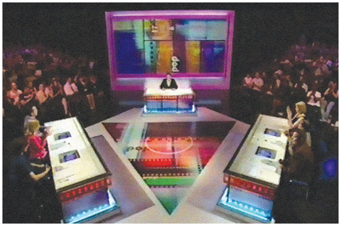 Panel show with 2 teams of comedians / actors and film industry celebtities competing to answer movie buff questions. Shot at fountain studios.