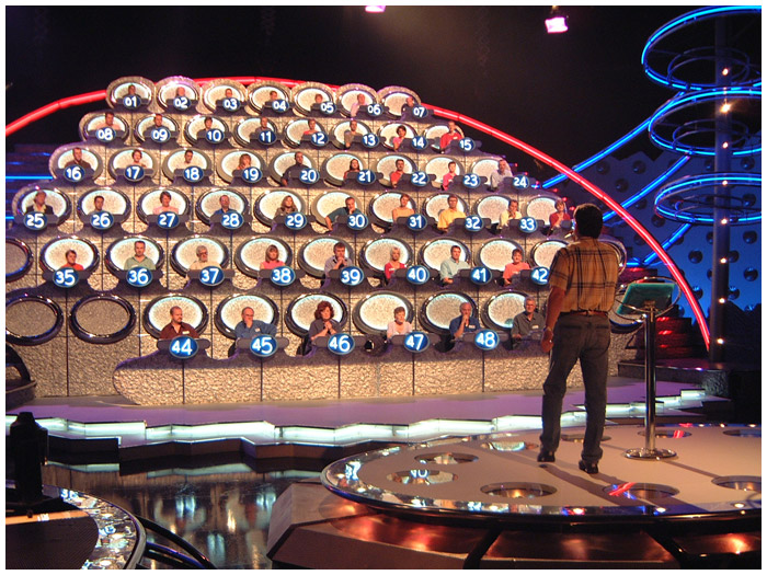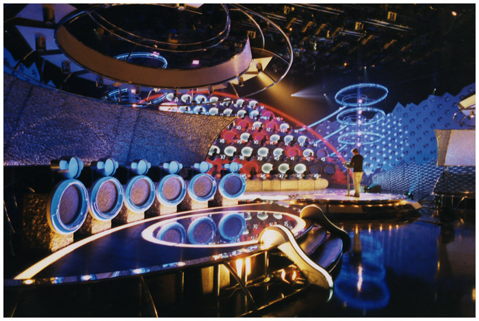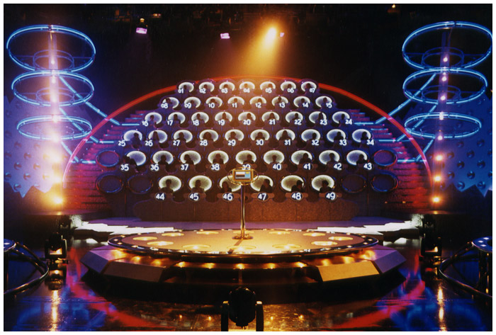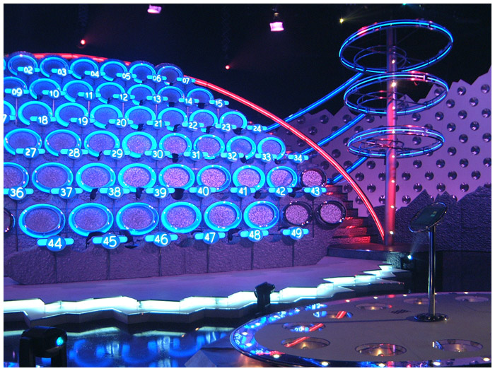 This was a huge show. Broadcast live from the double studio at fountain studios the set was very complex and had to answer many briefs to work with the various games played and the very strict legal guideline that came along with the national lottery.