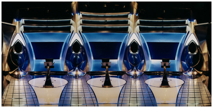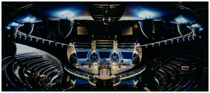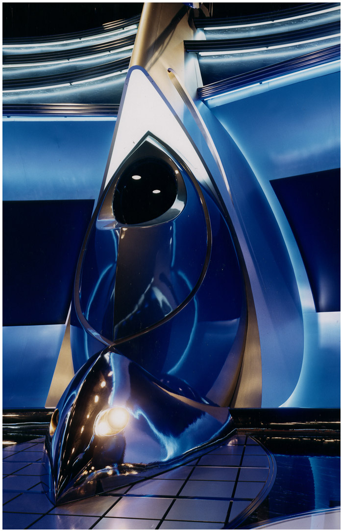 The set budget was huge which allowed for me to use many complex and expensive processes that are normally well out of reach , for example the set was spray painted by Porsche to give the liquid metallic paint finish and many of the lights built in to the set where zenon headlights.
